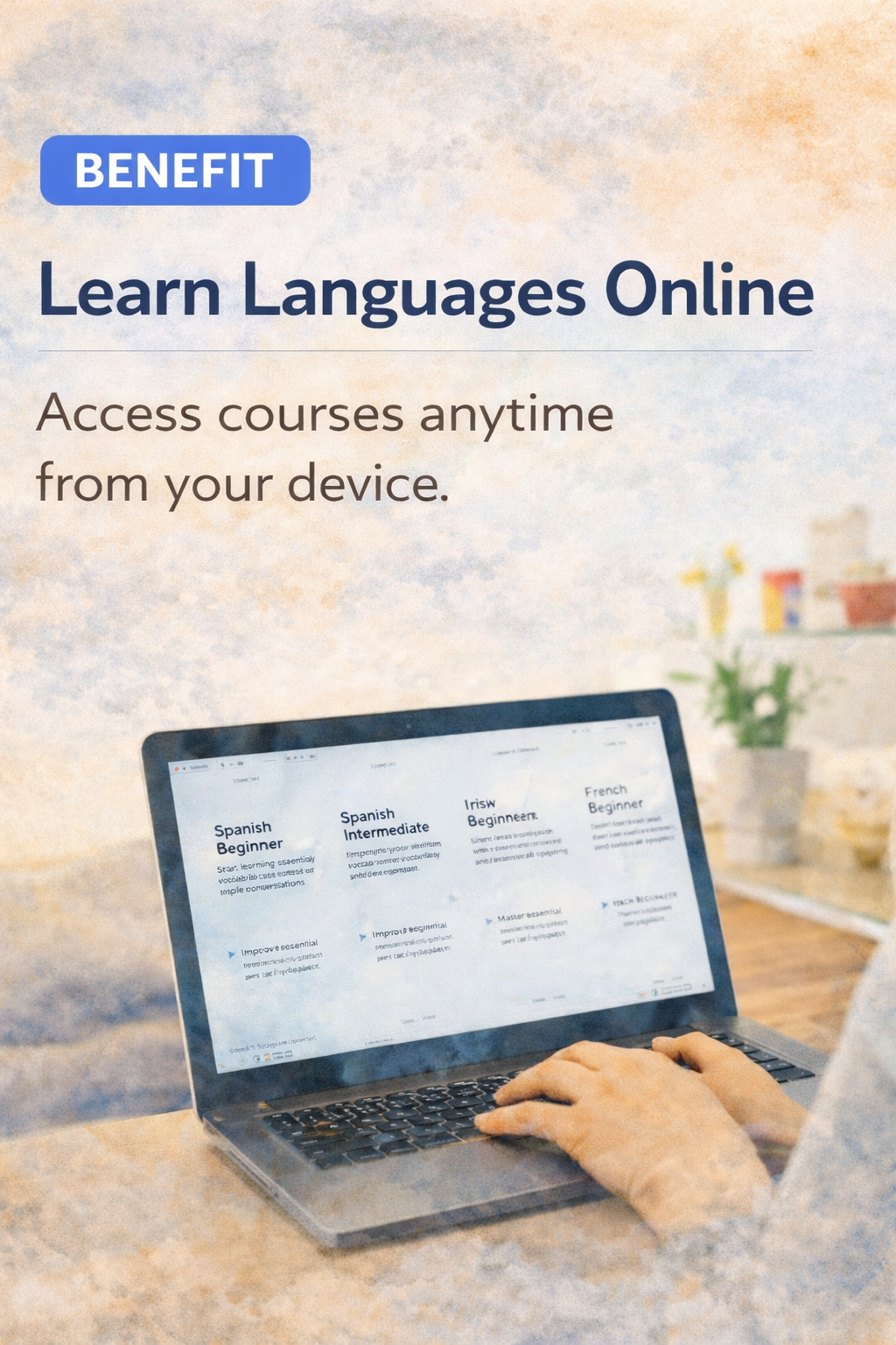 Learn from anywhere without being tied to a fixed schedule. The flexible online format allows you to balance language learning with work, studies and daily responsibilities while maintaining consistent progress.